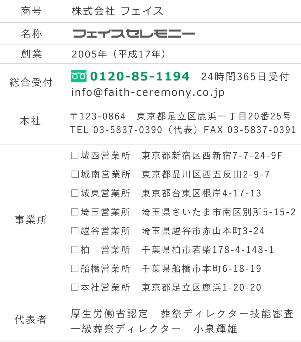 ホーム | 一日葬とは | 一日葬の流れ | 一日葬プラン 利点と注意点 | お体の預り | 葬儀実例 |葬儀の種類 よくある質問 | 花祭壇カタログ | 一日葬の申込み 東京都の式場 | 埼玉県の式場 | 千葉県の式場 無料相談 | 見積・資料請求 | 家族葬 | 直葬 |